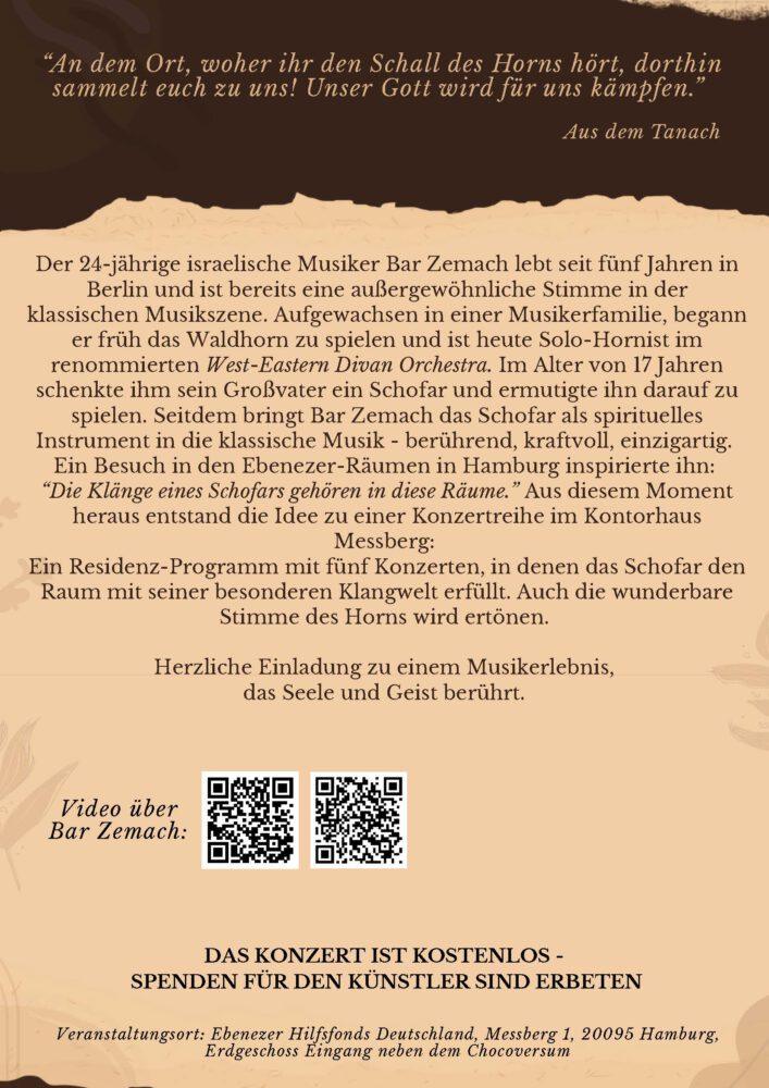 Gedenkkonzert mit dem israelischen Musiker Bar Zemach (Schofar) zur Reichspogromnacht