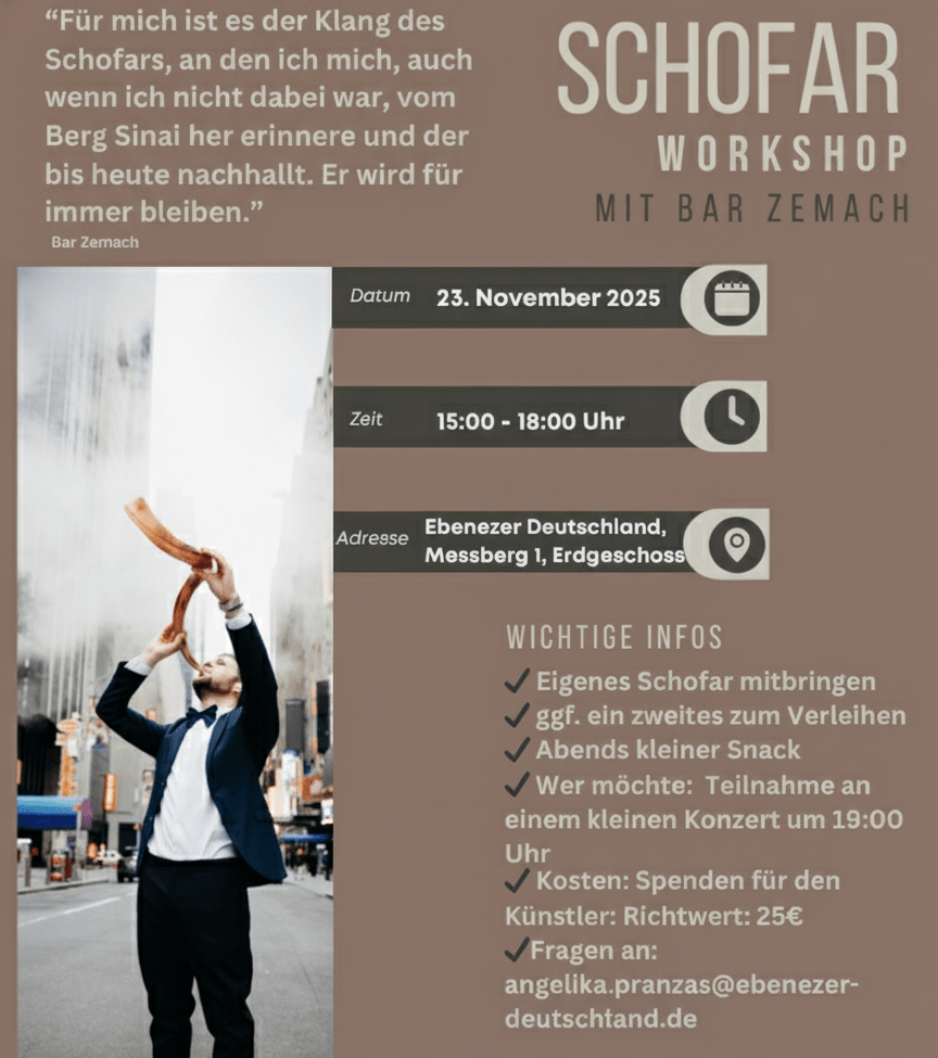 Am 23. November 2025 lädt Ebenezer Deutschland zu einem besonderen Schofar-Workshop mit dem israelischen Musiker Bar Zemach ein.